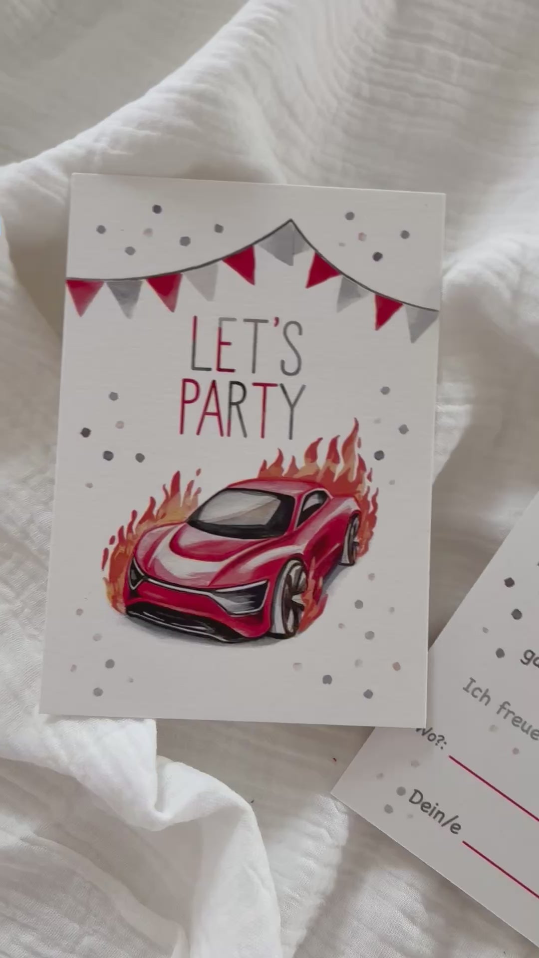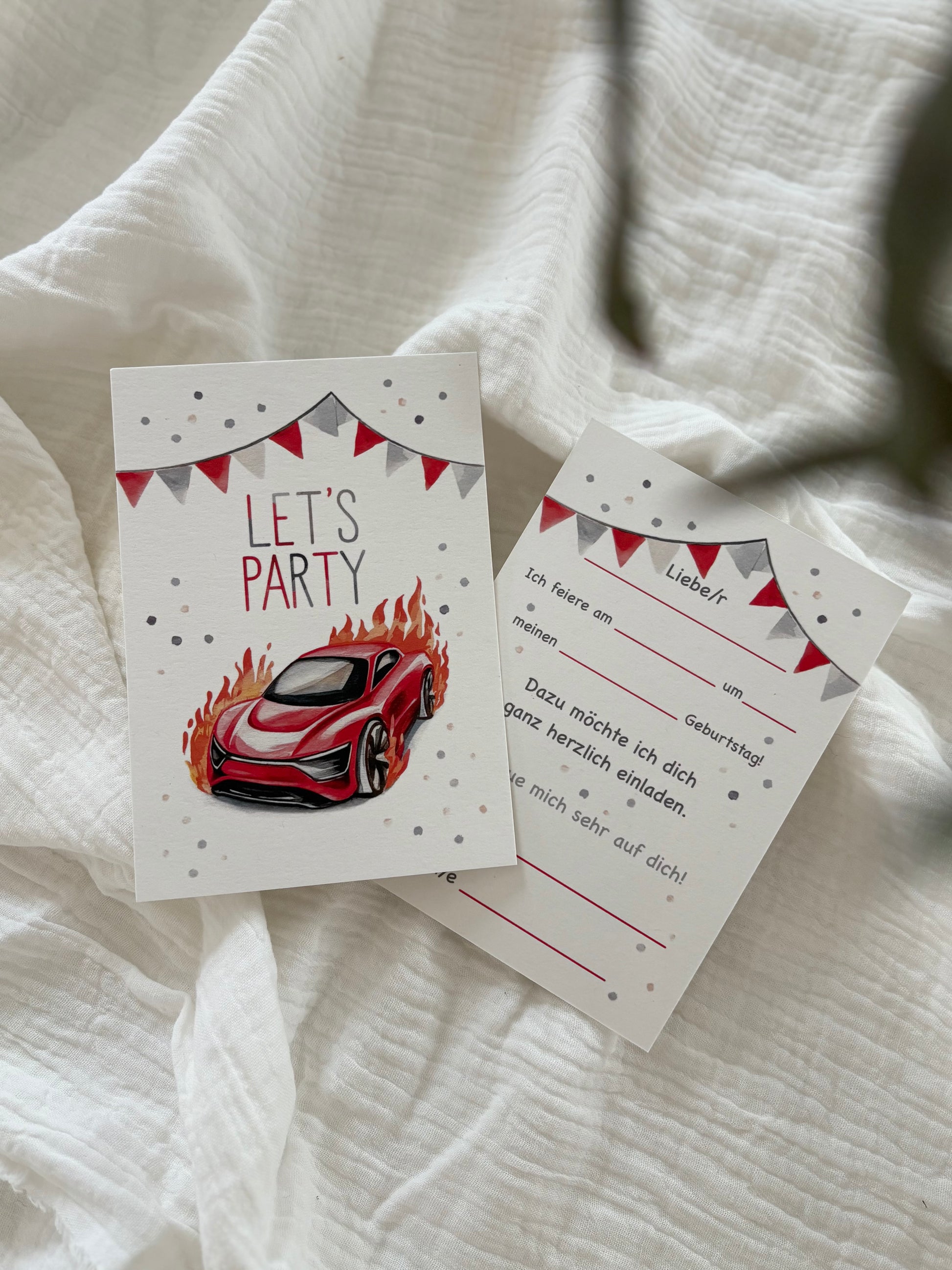 Rasante Einladung zum Rennauto-Geburtstag! Beidseitig bedruckt, einfach zum Ausfüllen. Starte mit deinen Freunden in ein actiongeladenes Rennen und feiere einen Geburtstag voller Geschwindigkeit und Spannung. Diese Einladung ist perfekt für alle kleinen Rennfahrer, die ihren besonderen Tag mit Vollgas genießen möchten. Eine großartige Möglichkeit, Familie und Freunde auf eine aufregende Party einzustimmen!